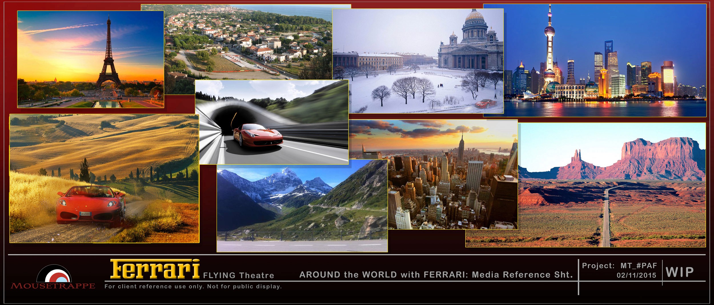 Flying Dreams is a traditional flying theater, built by Brogent, and featuring 11 locations around the world as guests journey from Ferrari's own race circuit in Maranello Italy, through France, Russia, China, the US, Monaco and ultimately arrive at PortAventura. Mousetrappe was the first studio to employ drones for the flight filming, allowing the riders to get closer to the featured Ferrari hero vehicles in each scene.