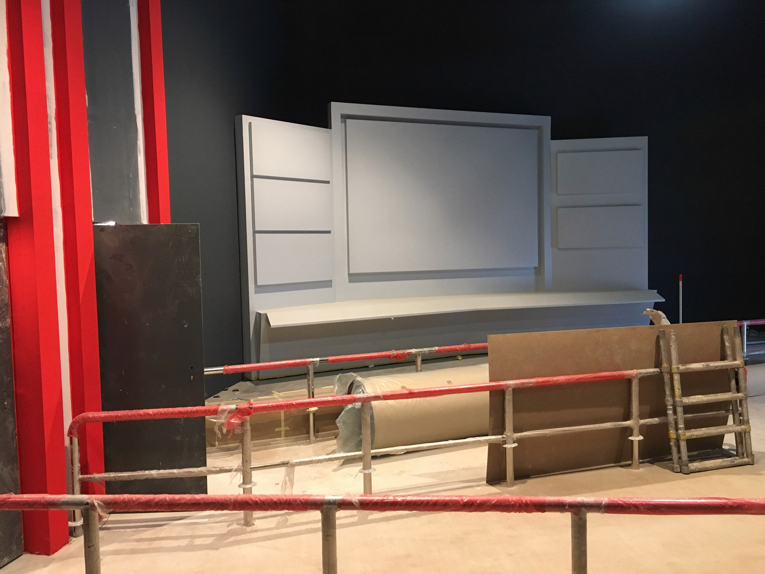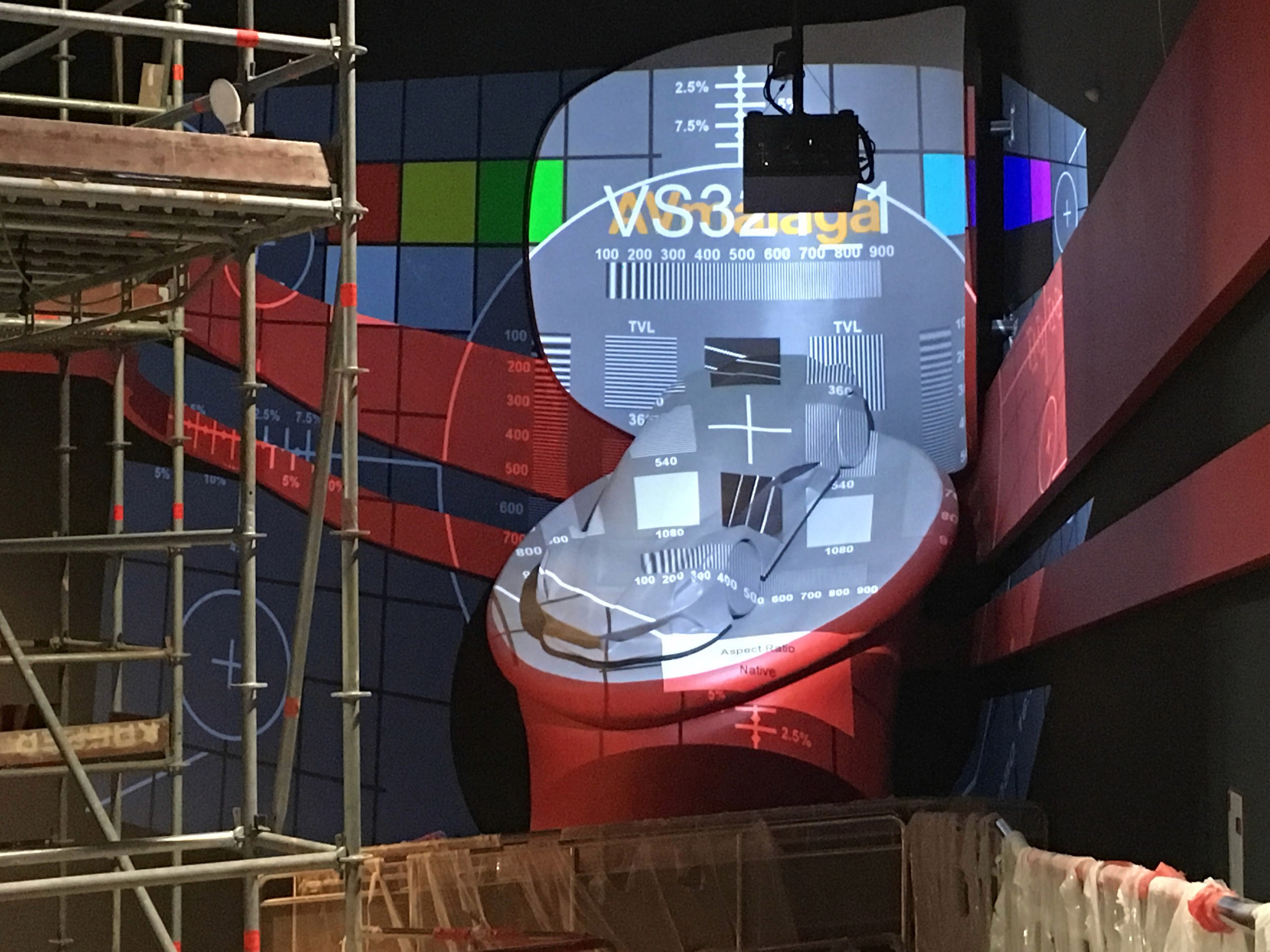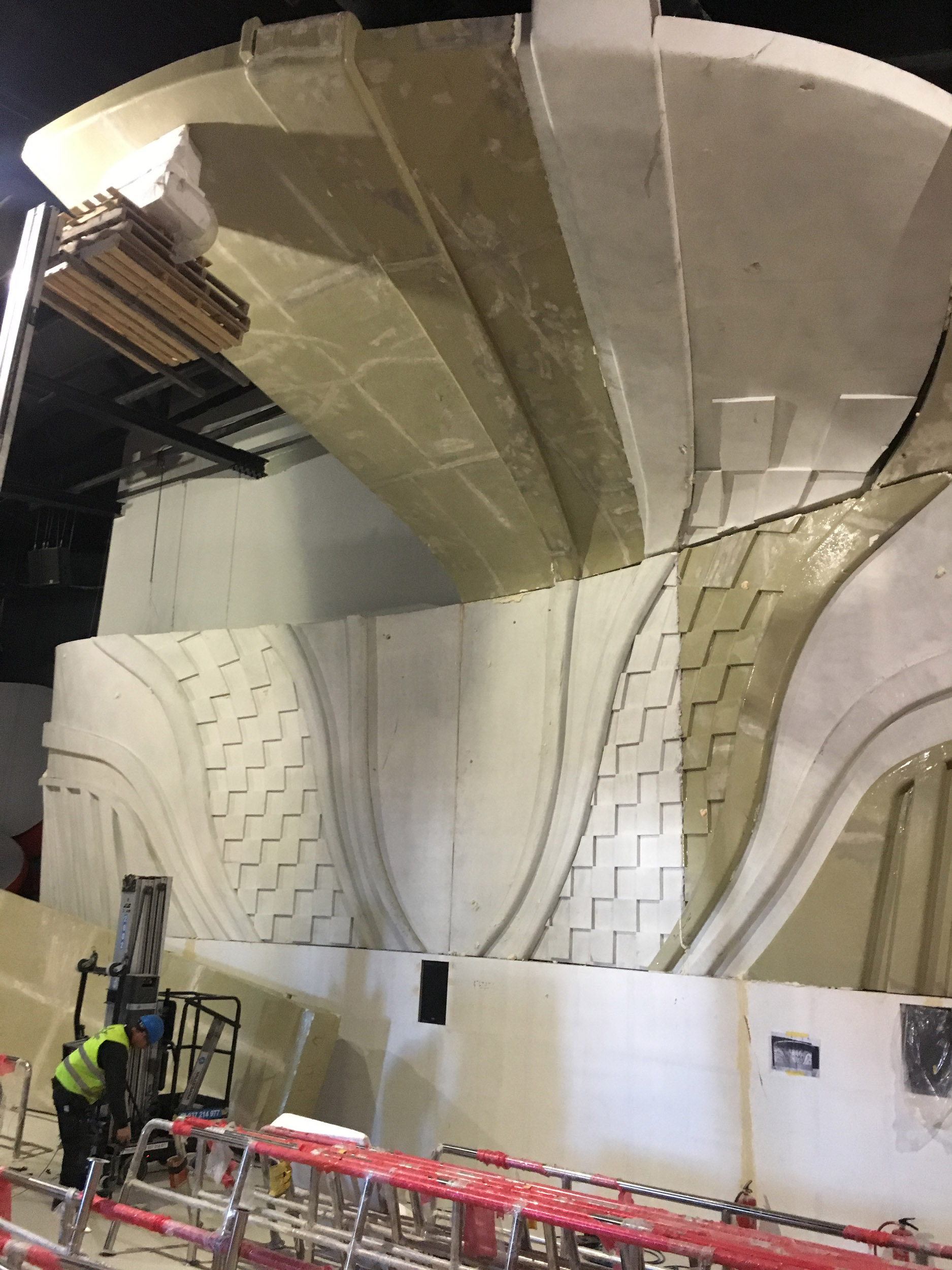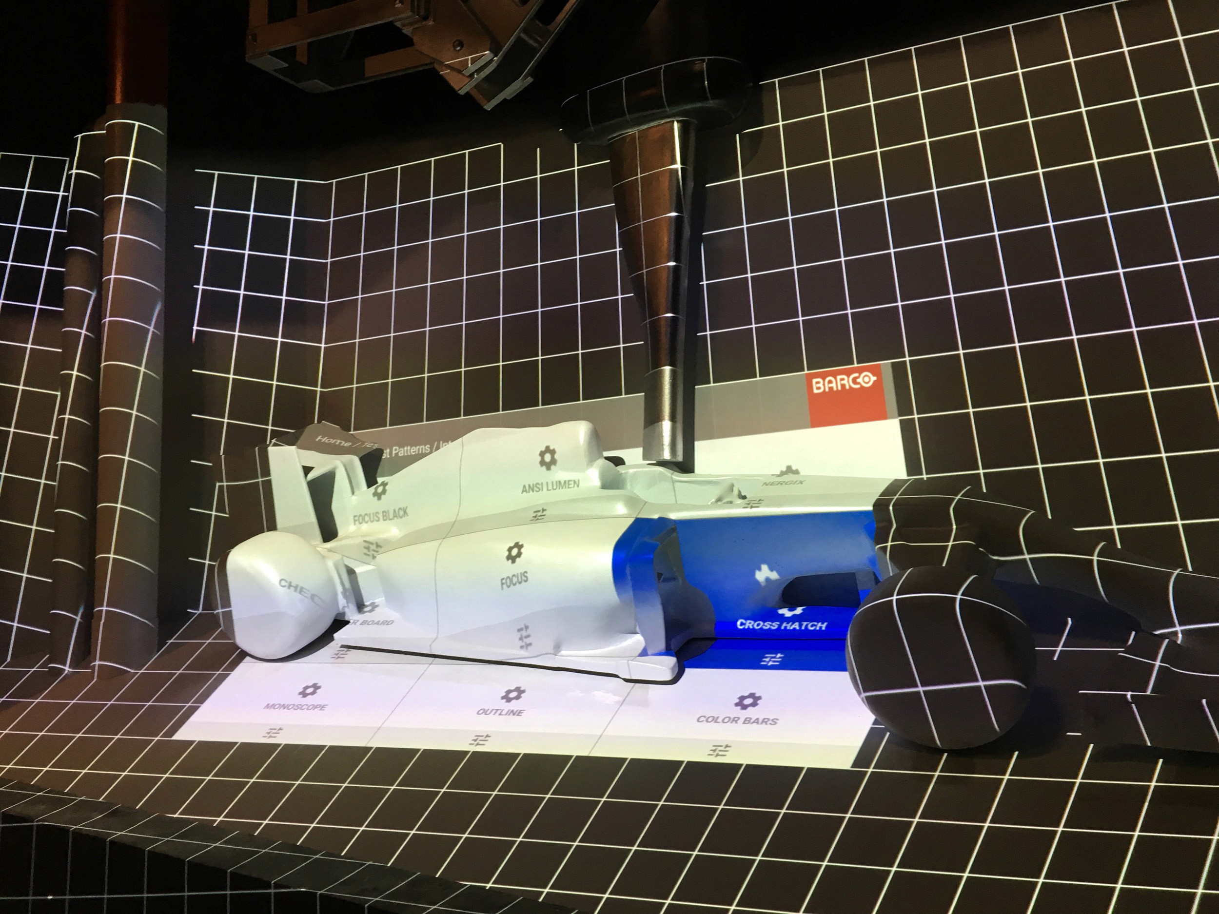 The direction was to not overly "theme" the space as the rest of the land provided plenty of Italian and Ferrari environments, but rather to create dynamic storytelling through a combination of scenic and video projections. For the extended queue we created a massive 35' tall by 90' wide bas relief filled with projection mapping and a 30 minute loop celebrating everything Ferrari. The centerpiece was flanked by projection-mapped Ferrari's - a road car on the flying theater entrance side and an F1 car for the other.