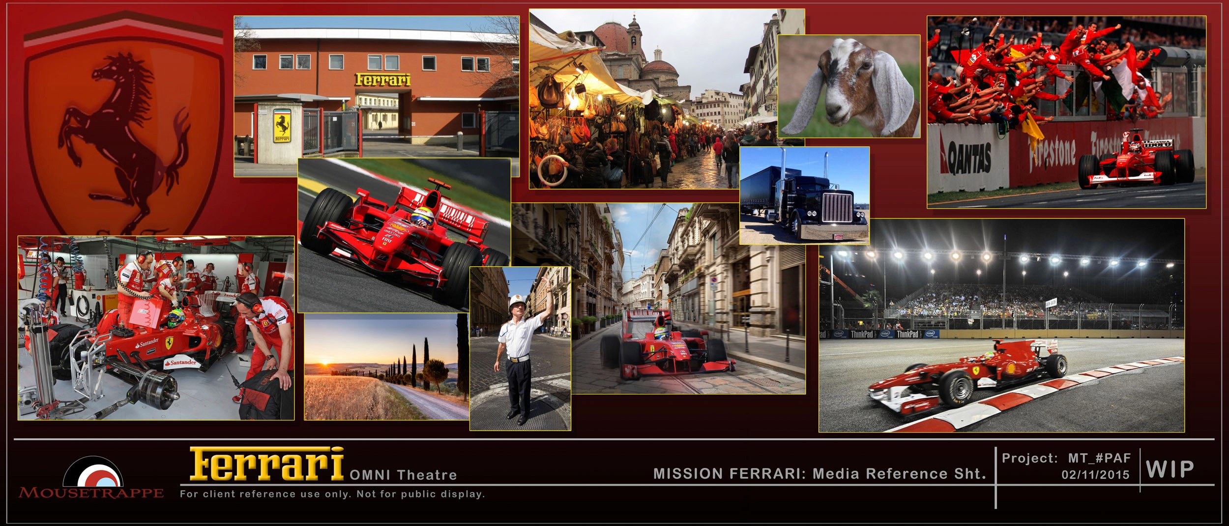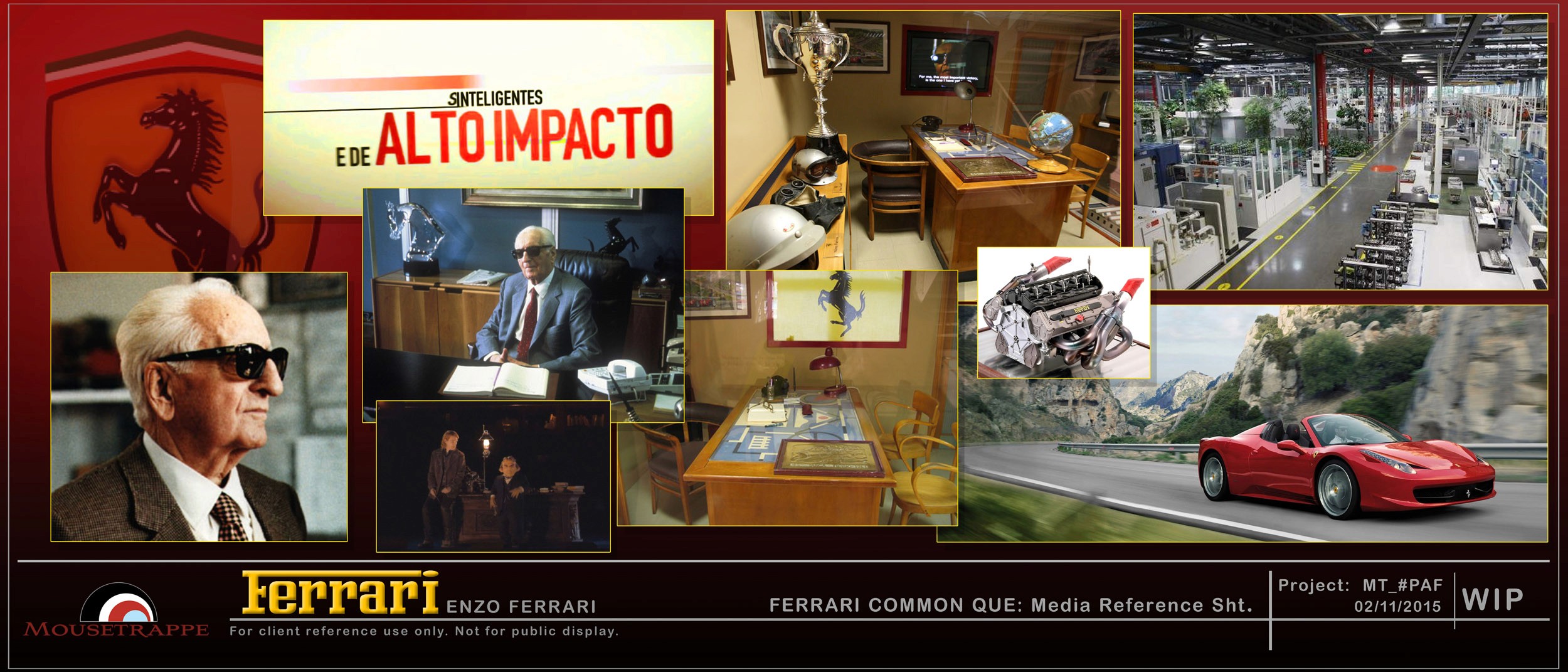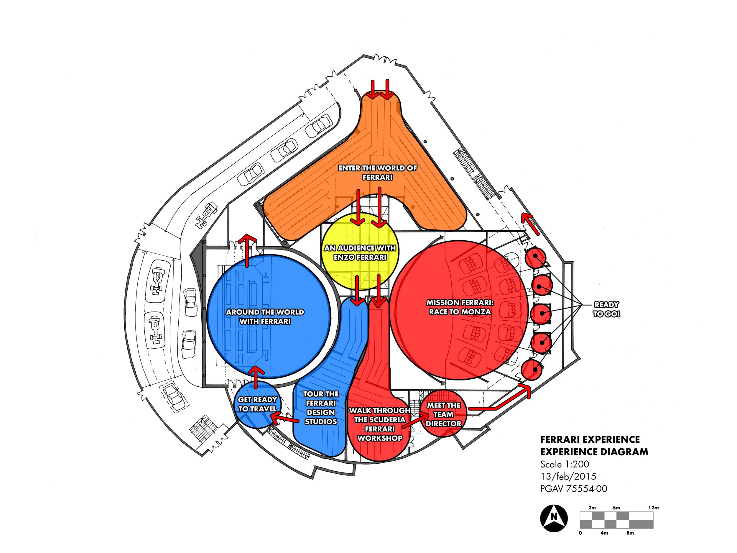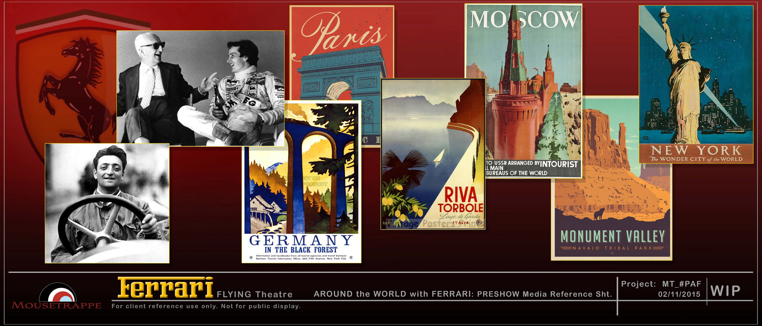 Daren and his team at Mousetrappe were engaged by PortAventura World (owner/operator) and PGAV Destinations (master planning consultant) to design and direct all interior components of the centerpiece attractions for Ferrari Land. Under one roof the client desired two different ride-film attractions: a flying theater taking guests on a journey around the world and featuring Ferrari's GT (road) cars "Flying Dreams", and a higher adrenaline Formula One dome simulator "Racing Legends". Both attractions were to share a common indoor extended queue and pre-show visit with founder Enzo Ferrari (pepper's ghost) in his office, then split into separate queues and secondary pre-shows themed to each ride.