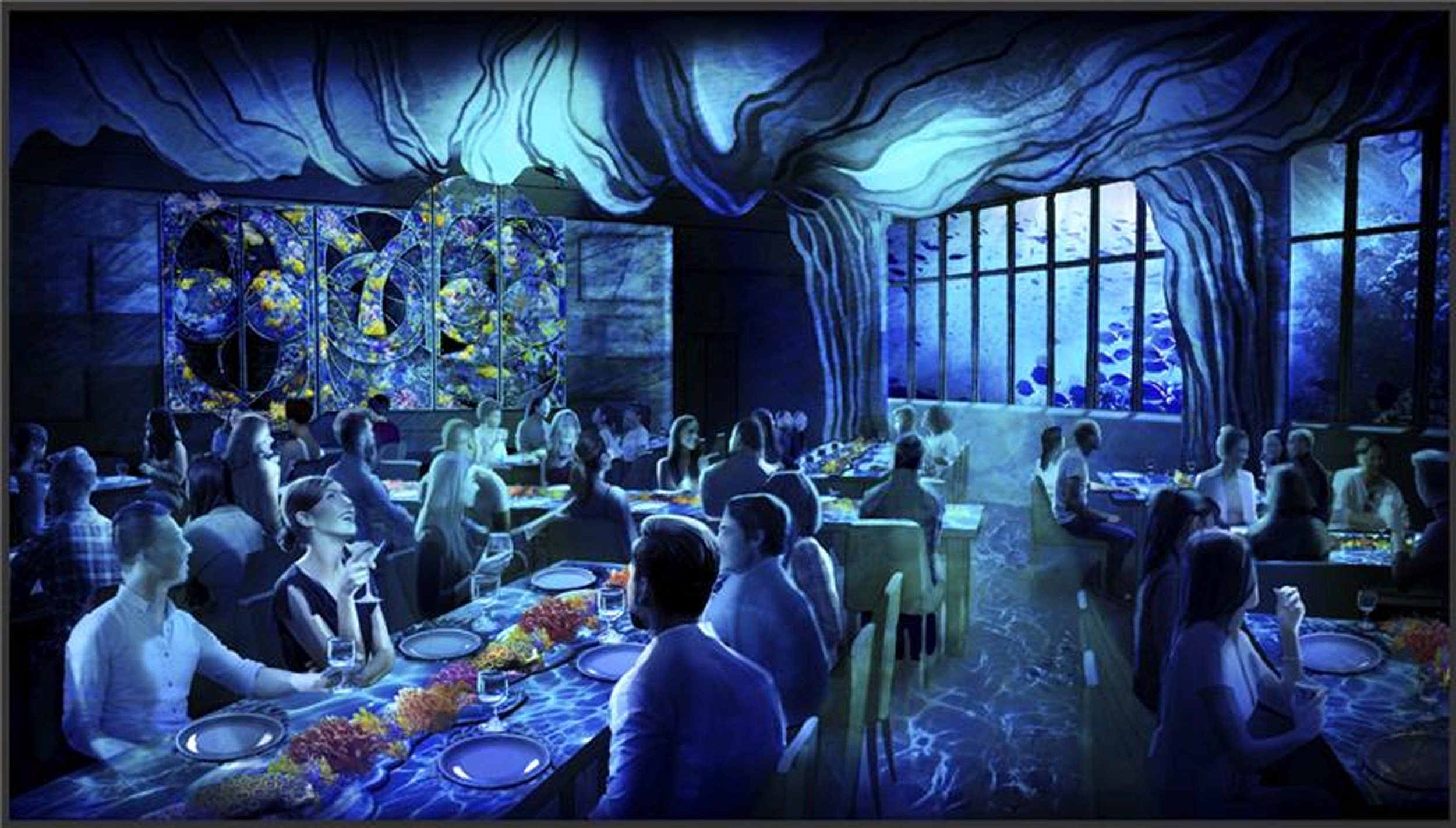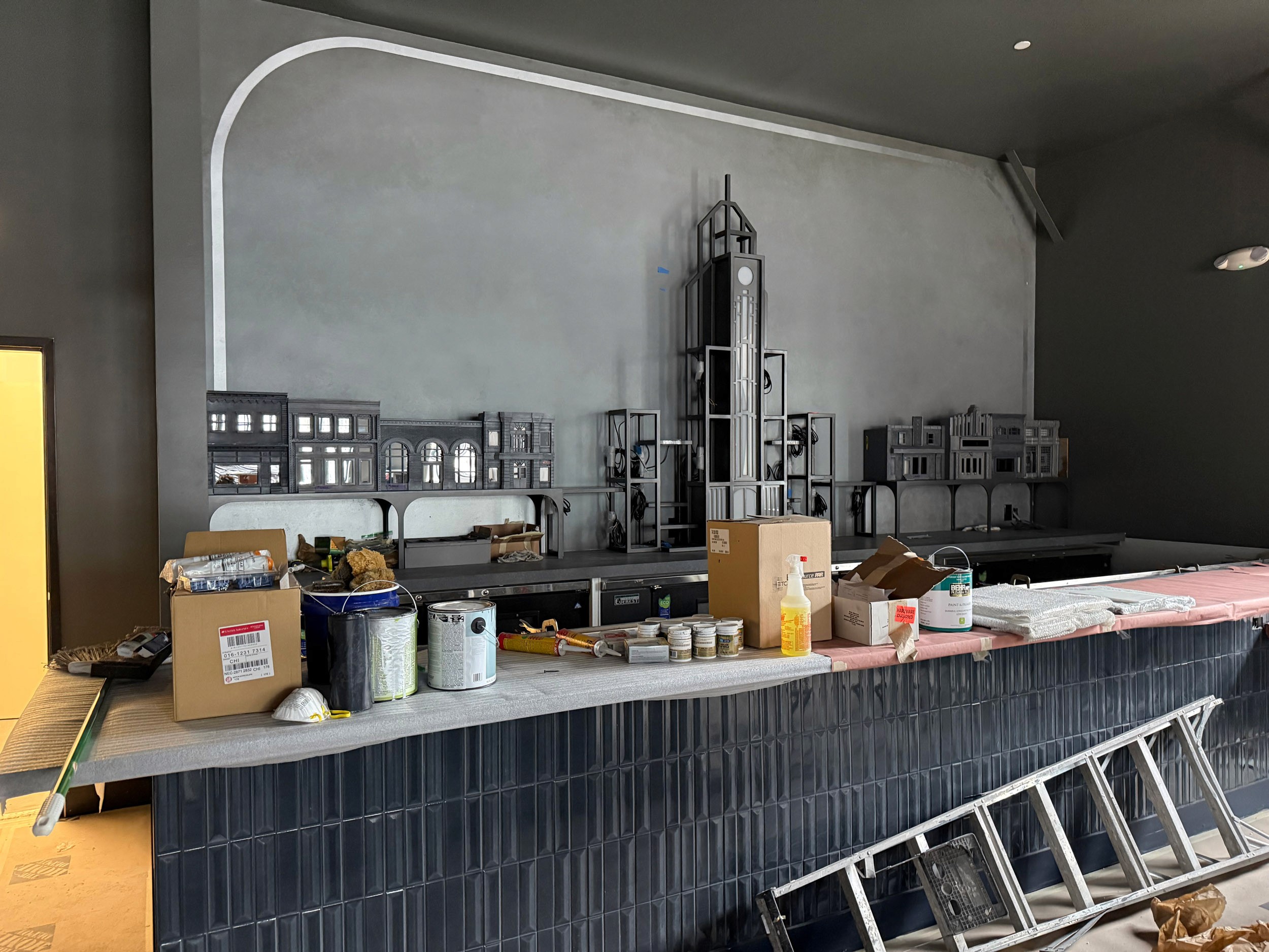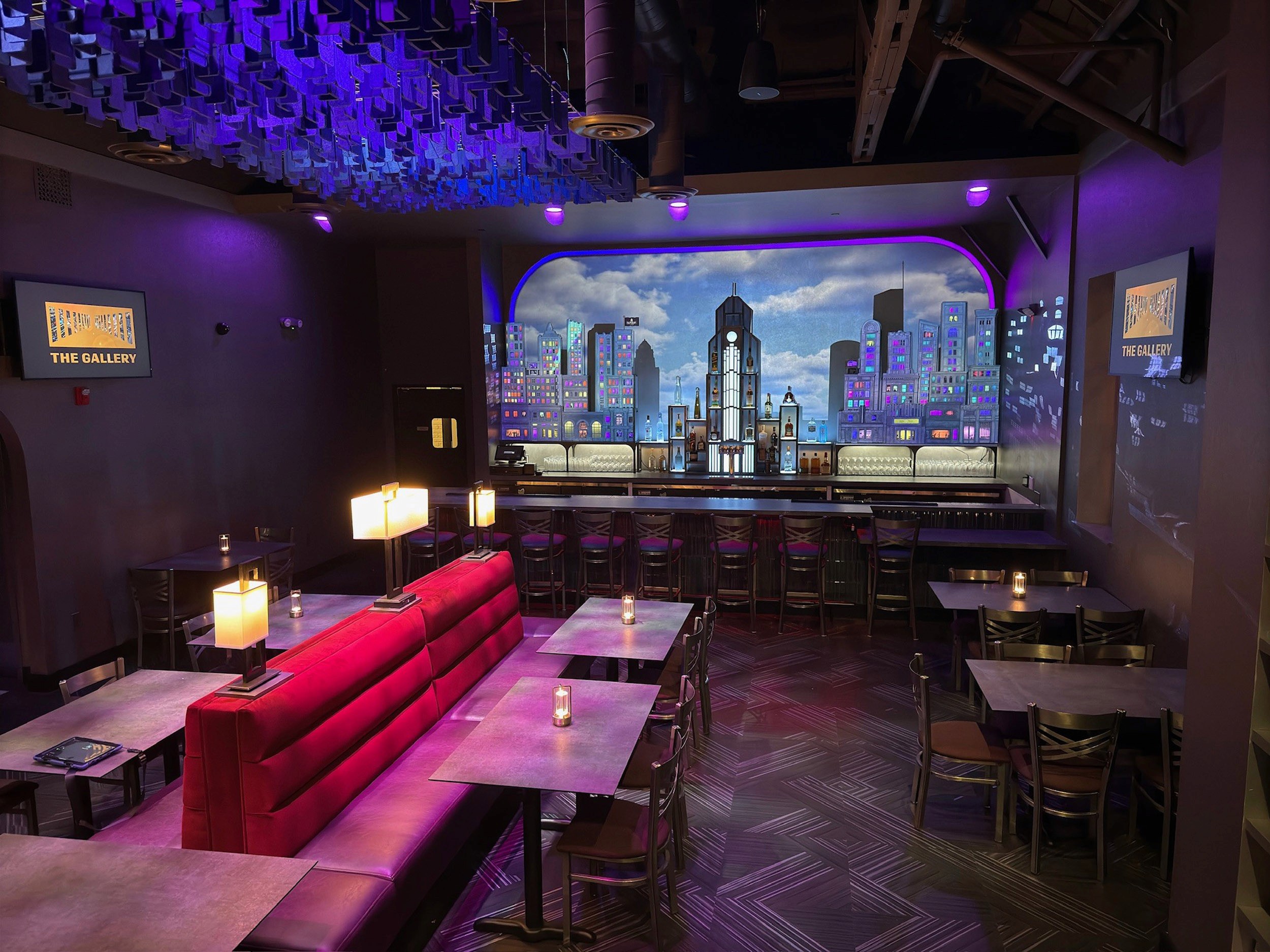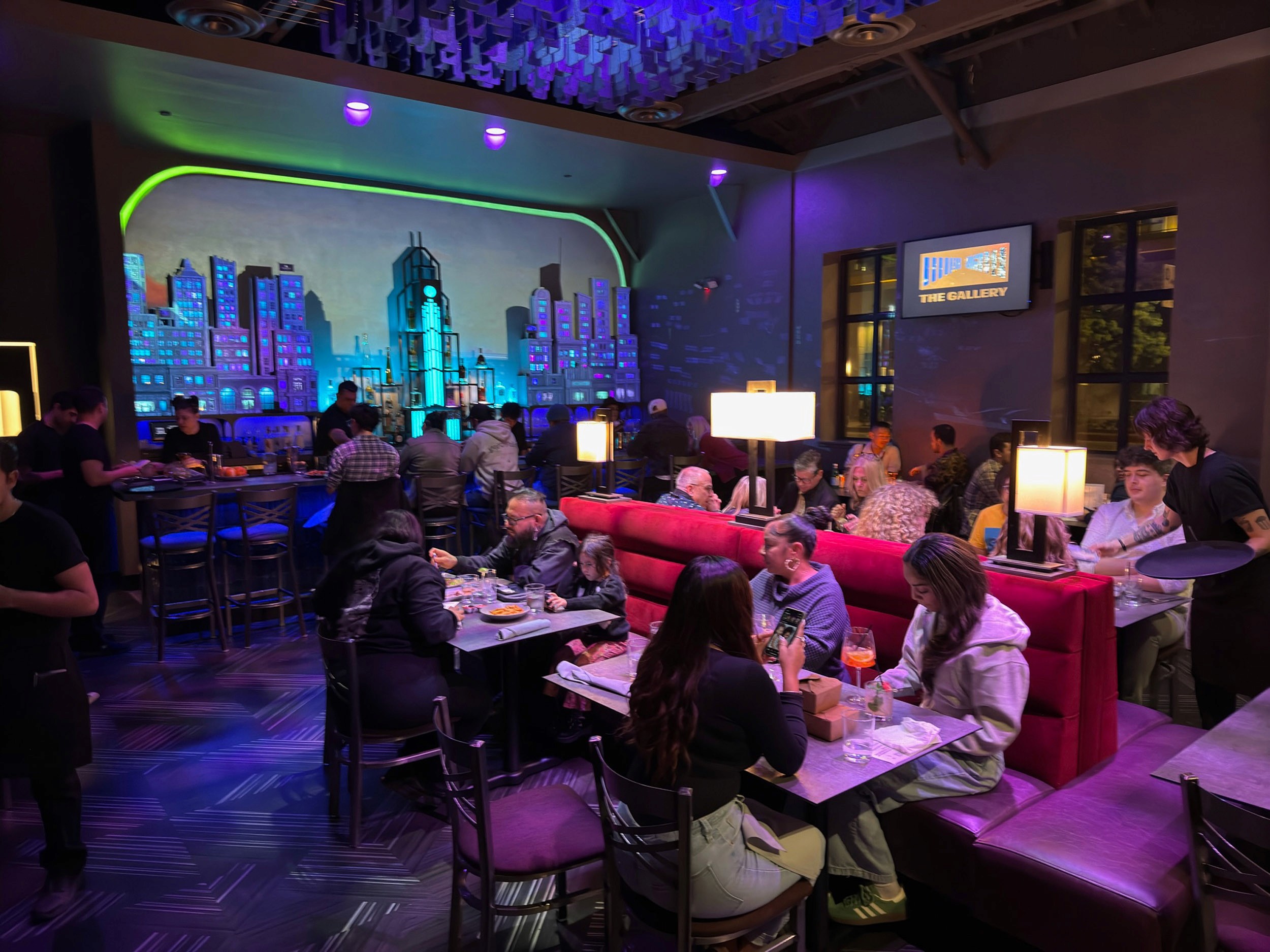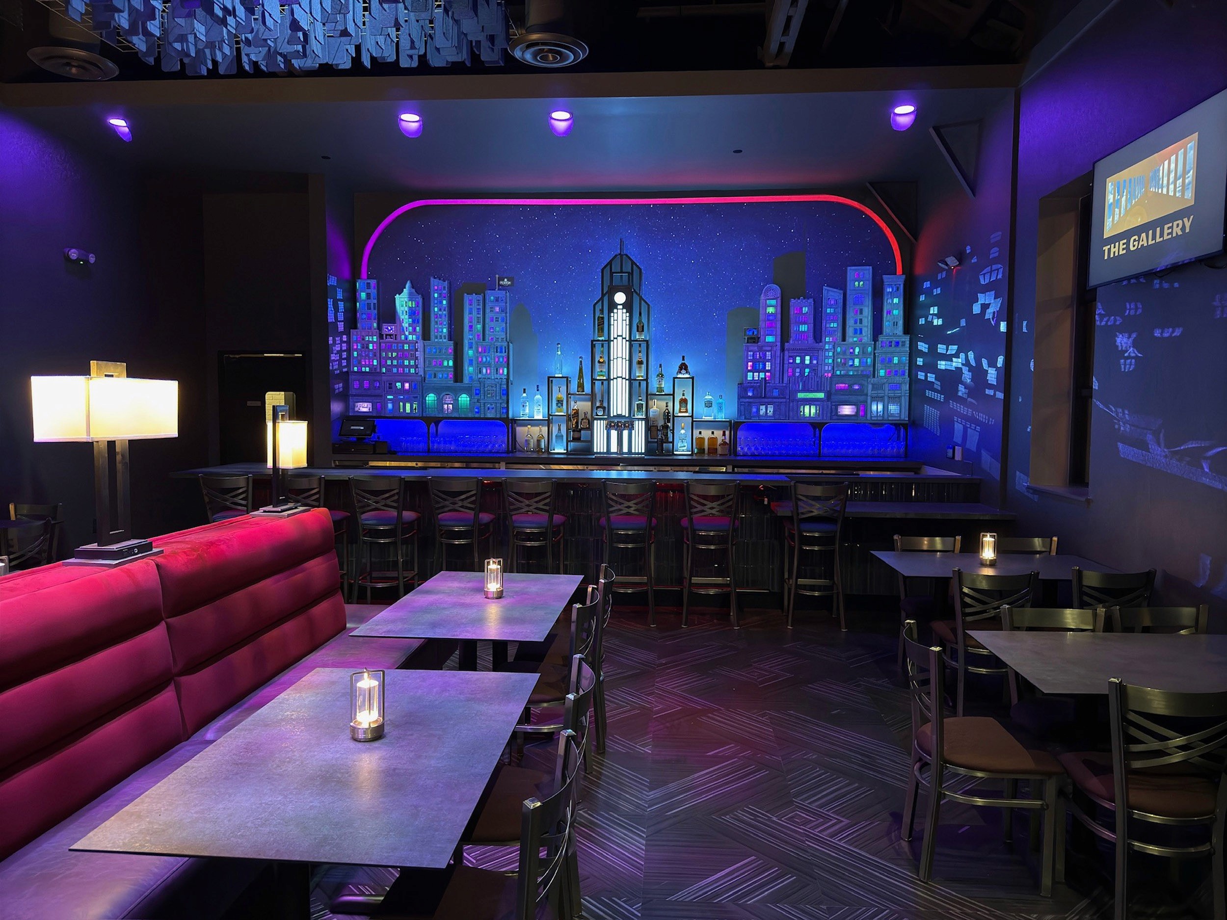 An adjacent dining drinking space called Horizon Lounge featured a miniature cityscape with media in the windows of the storefronts, apartments and offices - offering glimpses of daily life that could change with the time of day, season or adapt for parties and special events.