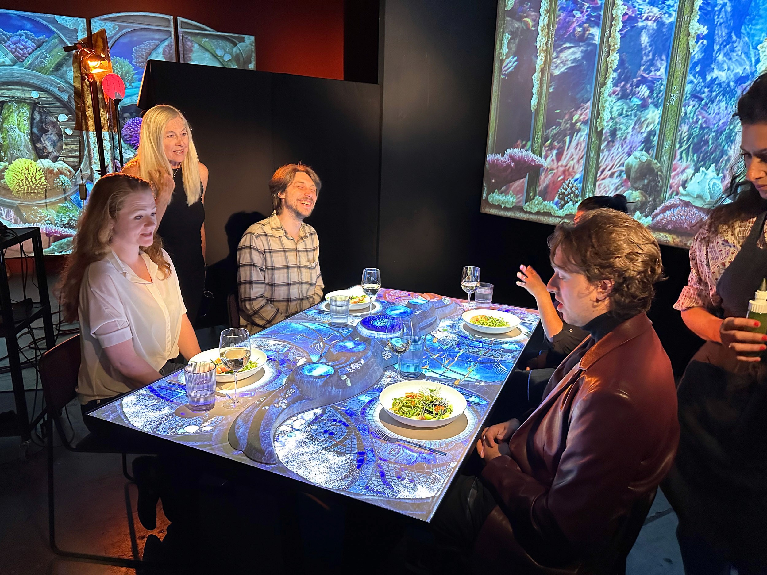 Daren was co-owner and the lead creative for an immersive dining venue in downtown Los Angeles called The Gallery. Designed as a theater for food, the main room seated 80 people in prix fixe 2-hour dining experiences featuring 5 courses preceded each by 2-4 minute performances. A live host performer called "The Curator" brought the room (projection-mapped windows, walls, and table tops) to life through words and gestures to create unique environments based on the Five Classical Elements: earth, water, air, fire, and the aether. During the dining course the tabletops turned interactive and communal style seating allowed for guests to make new connections with their friends or neighboring strangers.